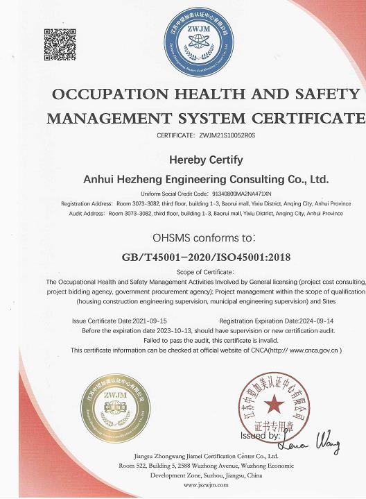 職業(yè)健康安全管理體系認(rèn)證證書(shū)