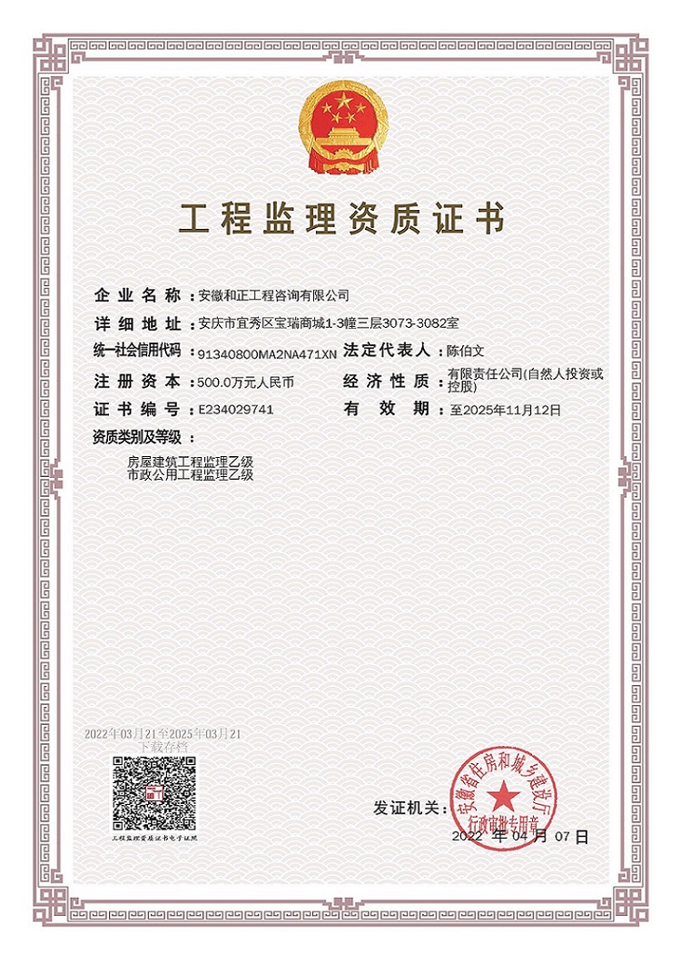 監(jiān)理資質(zhì)乙級(jí)(市政、房建)
