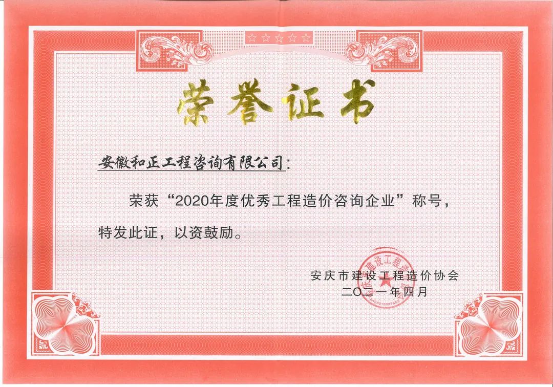 2020年度優(yōu)秀工程造價咨詢企業(yè)