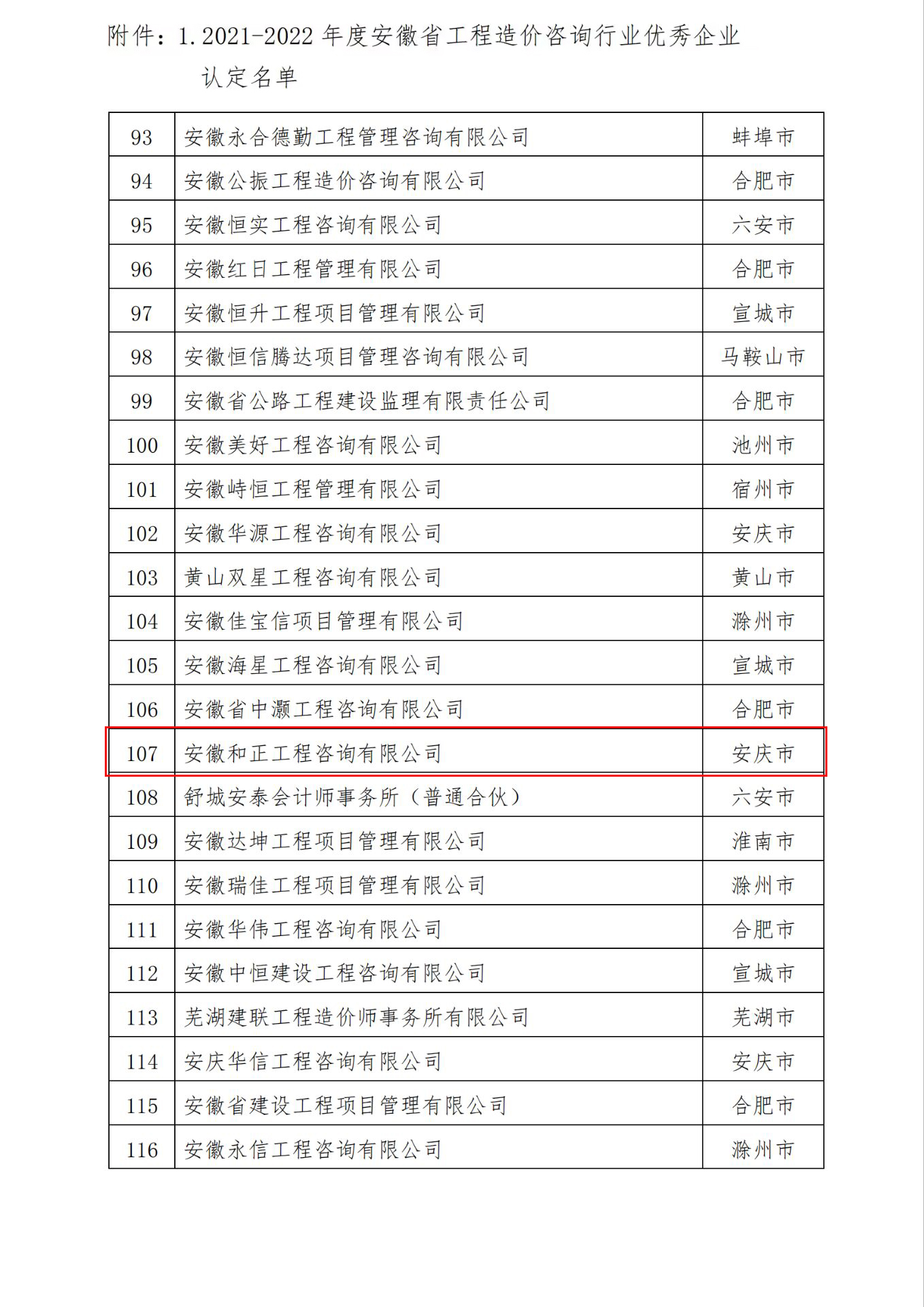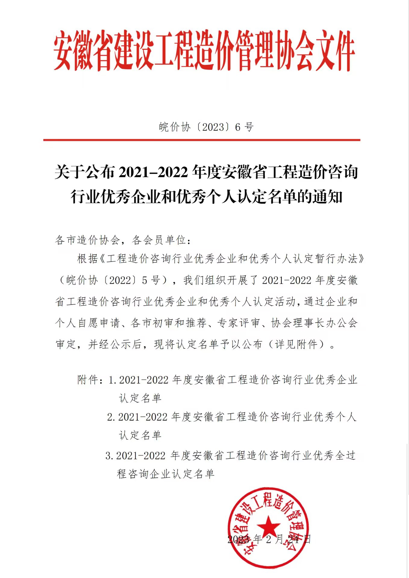 熱烈祝賀安徽和正工程咨詢有限公司榮獲“2021-2022年度安徽省工程造價咨詢行業(yè)優(yōu)秀企業(yè)”