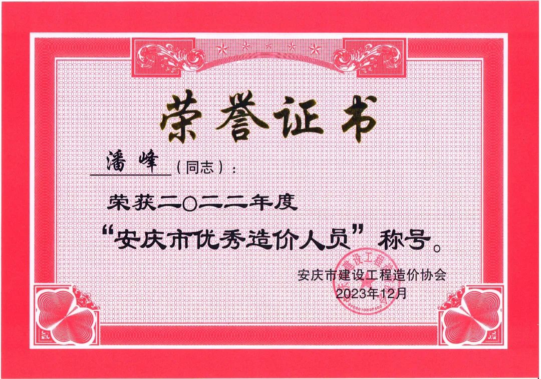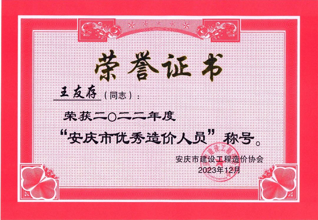 近日,安慶市建設(shè)工程造價(jià)協(xié)會(huì)發(fā)布了《關(guān)于公布2022年度安慶市優(yōu)秀工程造價(jià)咨詢(xún)企業(yè)及優(yōu)秀造價(jià)人員評(píng)選結(jié)果的通知》,公司榮獲“2022年度優(yōu)秀工程造價(jià)咨詢(xún)企業(yè)”、“2022年度安慶市優(yōu)秀造價(jià)人員”多項(xiàng)榮譽(yù)。