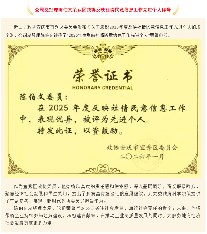 公司總經(jīng)理陳伯文榮獲區(qū)政協(xié)反映社情民意信息工作先進個人稱號